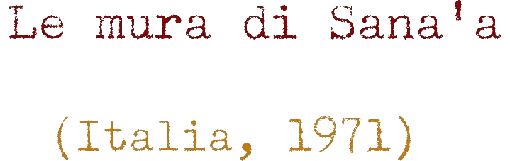Короткая зарисовка Пьера Паоло Пазолини о Йемене, мало популярном у туристов, его удивительной столице Сане. Призыв к ООН и современникам сохранить его.